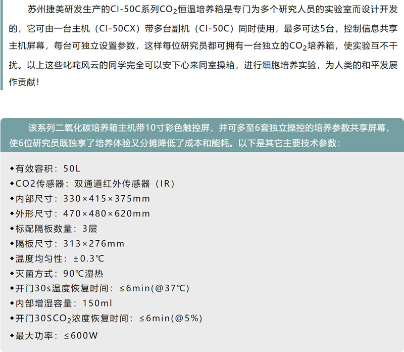 CI-50C系列主副機構(gòu)架的二氧化碳恒溫培養(yǎng)箱