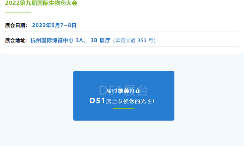 捷美/精騏有約:2022第九屆國際生物藥大會(huì)
